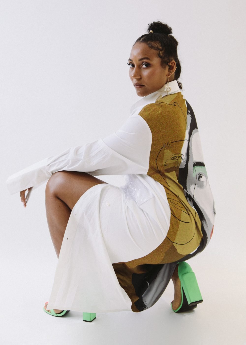 Kyra Wears: Shirt Dress: Assem Issingarina, Earrings: Ayse Daga, Shoes: EGO