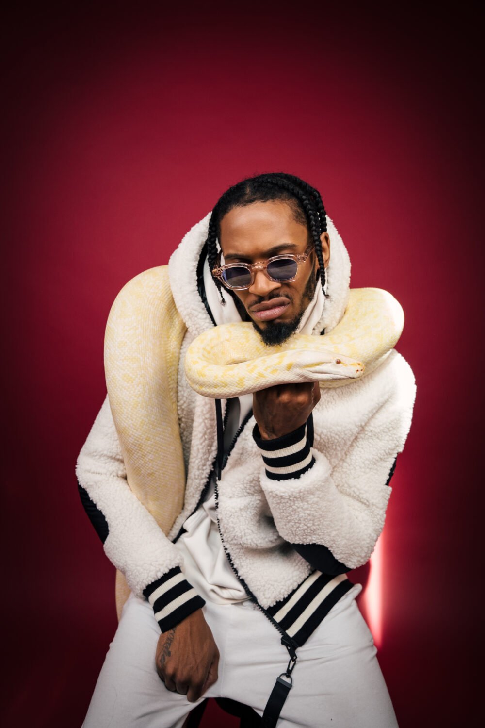 Glasses – Akila, Hoodie – 66 North, Jacket – Moose Knuckles Canada, Sweats – Collusion Studios